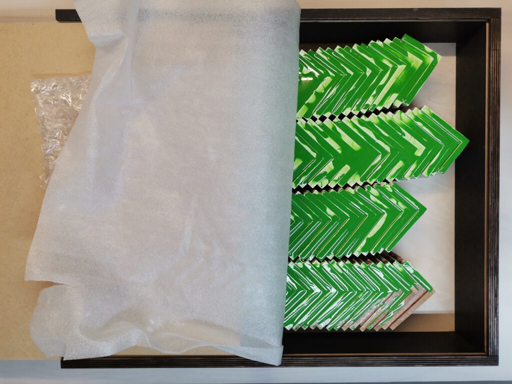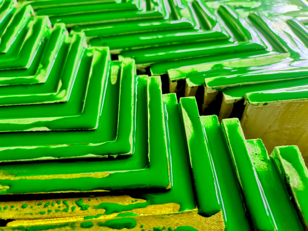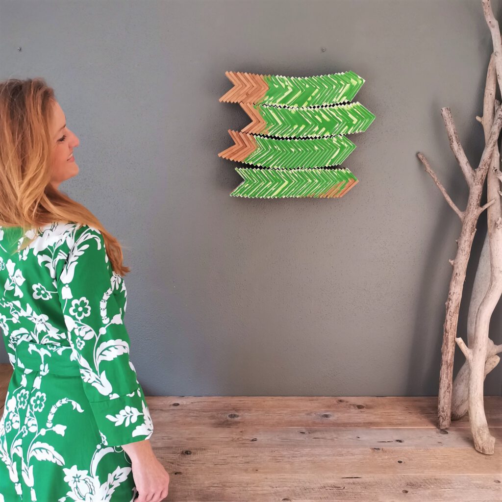 Mixed Media Art, wooden segments covered by luminous epoxy resin